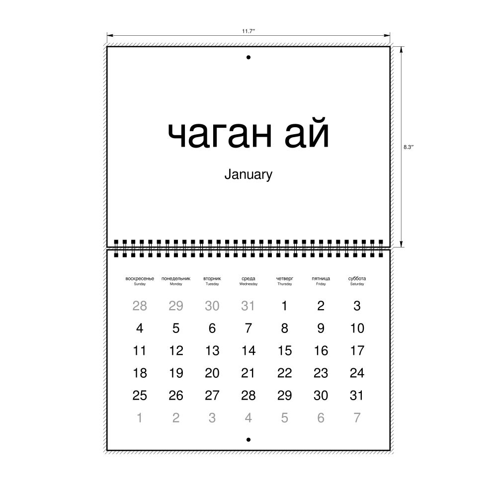 An Altai-language wall calendar (2026, Sunday-start format) with English translations.