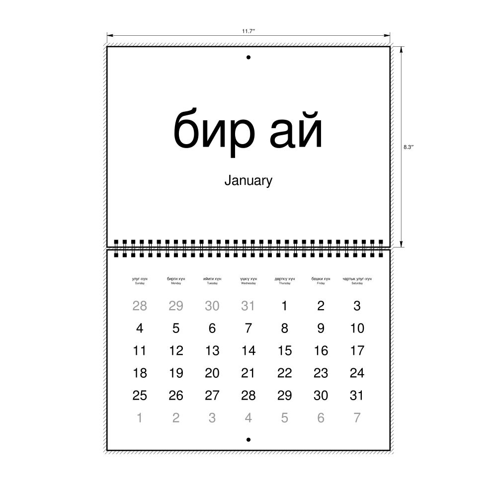 2027 Wall Calendar, Tuvan/English-Labeled, Monday-Start Layout, Wire-Bound, 11.7 x 8.3 in (29.7 x 21.0 cm)