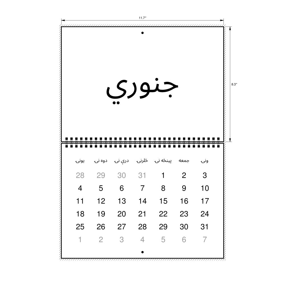 - Pashto heritage speakers and cultural connectors - For individuals seeking to maintain a connection to their history, ancestral roots, or the culture associated with the Pashto language, the calendar serves as a daily cultural marker. Use it in your home, office, library, or museum as a link to linguistic and cultural identity that integrates Pashto into your everyday life. Familiar language script and naming conventions may also provide a sense of home in a foreign environment.