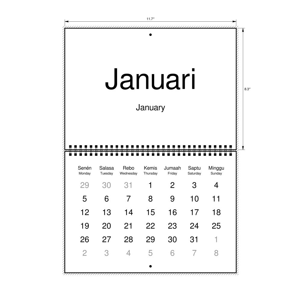 2027 Wall Calendar, Sundanese-Labeled, Monday-Start Layout, Wire-Bound, 11.7 x 8.3 in (29.7 x 21.0 cm)