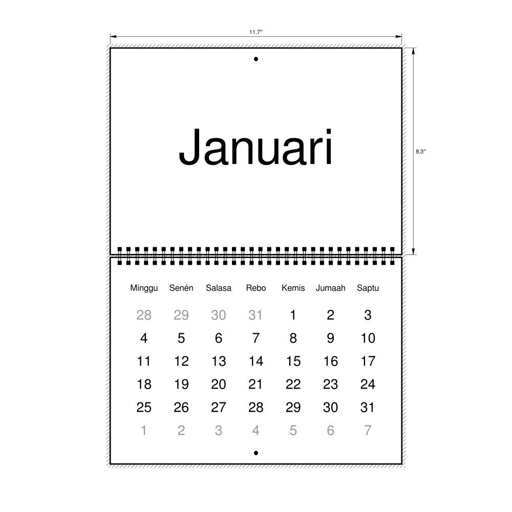 2027 Wall Calendar, Sundanese-Labeled, Monday-Start Layout, Wire-Bound, 11.7 x 8.3 in (29.7 x 21.0 cm)