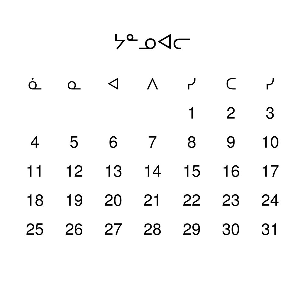 • Inuktitut heritage speakers and cultural connectors - For individuals seeking to maintain a connection to their history, ancestral roots, or the culture associated with the Inuktitut language, the calendar serves as a daily cultural marker. Use it in your home, office, library, or museum as a link to linguistic and cultural identity that integrates Inuktitut into your everyday life. Familiar language script and naming conventions may also provide a sense of home in a foreign environment.