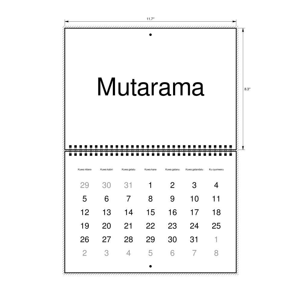 - Kinyarwanda heritage speakers and cultural connectors - For individuals seeking to maintain a connection to their history, ancestral roots, or the culture associated with the Kinyarwanda language, the calendar serves as a daily cultural marker. Use it in your home, office, library, or museum as a link to linguistic and cultural identity that integrates Kinyarwanda into your everyday life. Familiar language script and naming conventions may also provide a sense of home in a foreign environment.