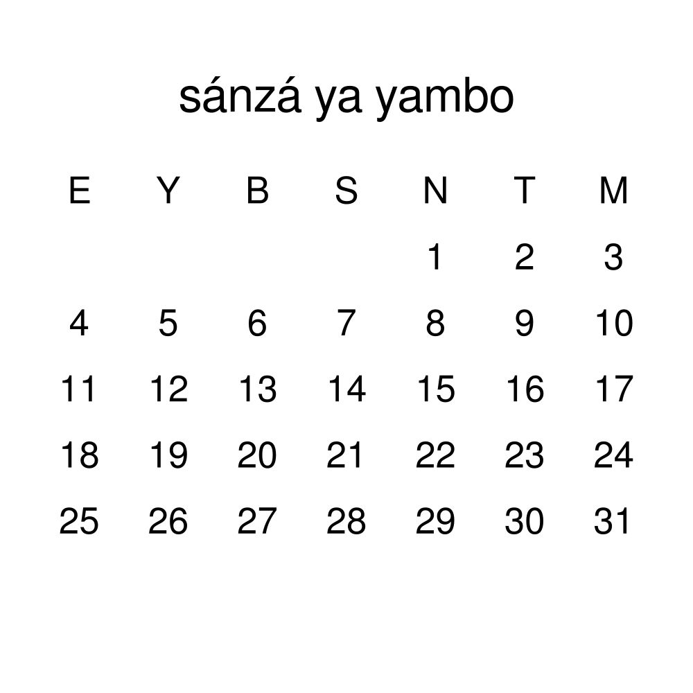 • Lingala language learners and students - For individuals currently studying Lingala, this calendar acts as a tool for passive learning and vocabulary reinforcement. It integrates essential Lingala vocabulary into a daily visual environment and promotes retention through passive immersion and spaced repetition. Place it above a desk or study area to support immersion techniques.