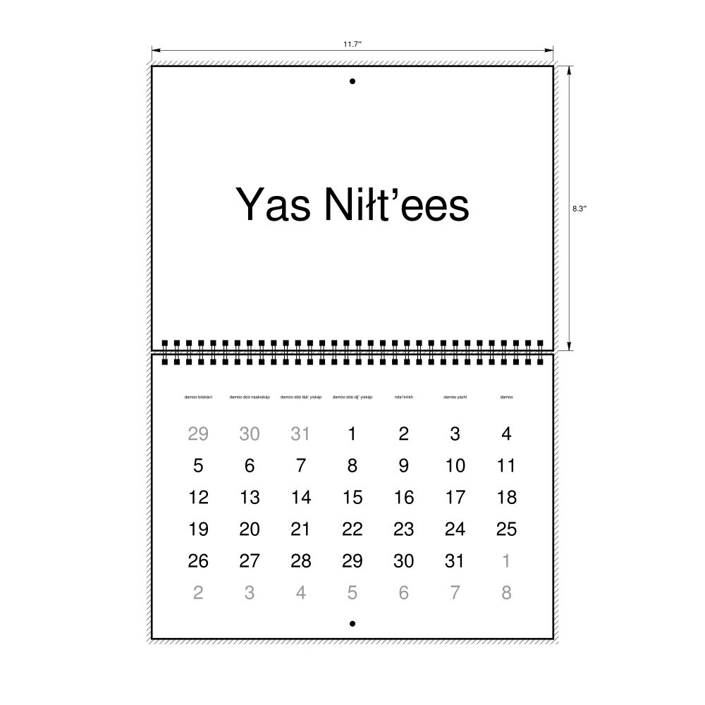 - Navajo heritage speakers and cultural connectors - For individuals seeking to maintain a connection to their history, ancestral roots, or the culture associated with the Navajo language, the calendar serves as a daily cultural marker. Use it in your home, office, library, or museum as a link to linguistic and cultural identity that integrates Navajo into your everyday life. Familiar language script and naming conventions may also provide a sense of home in a foreign environment.