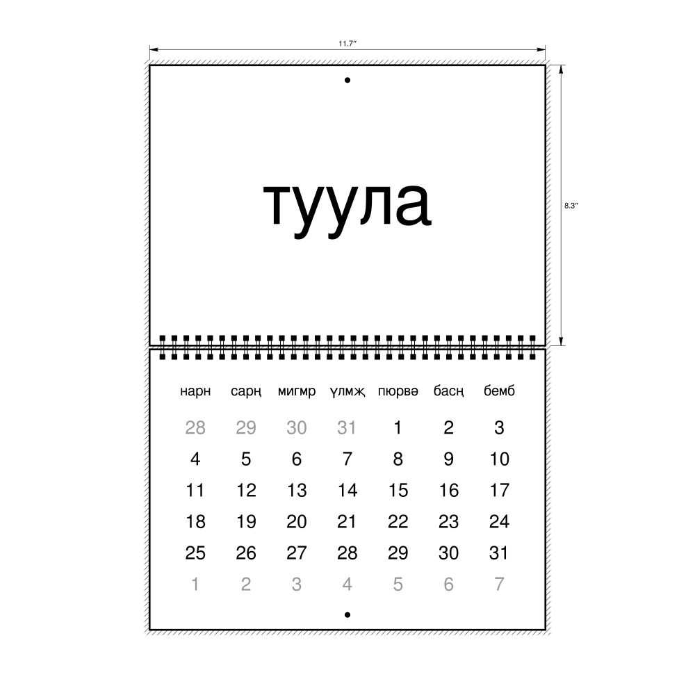 - Kalmyk heritage speakers and cultural connectors - For individuals seeking to maintain a connection to their history, ancestral roots, or the culture associated with the Kalmyk language, the calendar serves as a daily cultural marker. Use it in your home, office, library, or museum as a link to linguistic and cultural identity that integrates Kalmyk into your everyday life. Familiar language script and naming conventions may also provide a sense of home in a foreign environment.