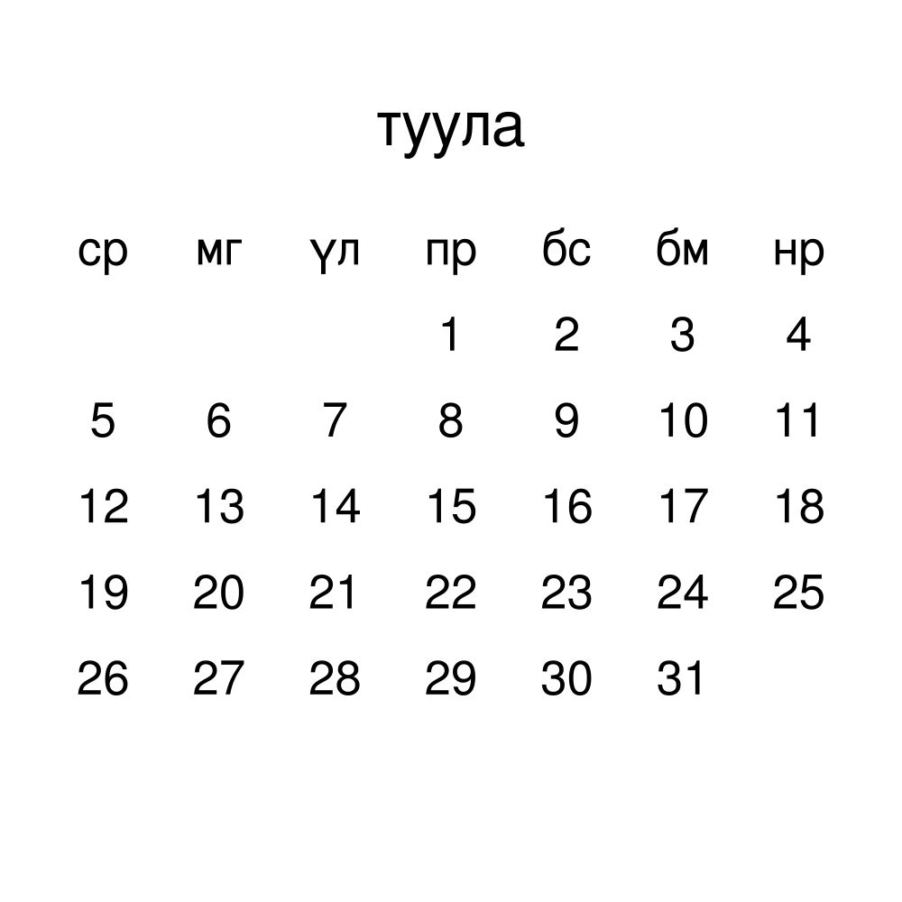 - Kalmyk heritage speakers and cultural connectors - For individuals seeking to maintain a connection to their history, ancestral roots, or the culture associated with the Kalmyk language, the calendar serves as a daily cultural marker. Use it in your home, office, library, or museum as a link to linguistic and cultural identity that integrates Kalmyk into your everyday life. Familiar language script and naming conventions may also provide a sense of home in a foreign environment.