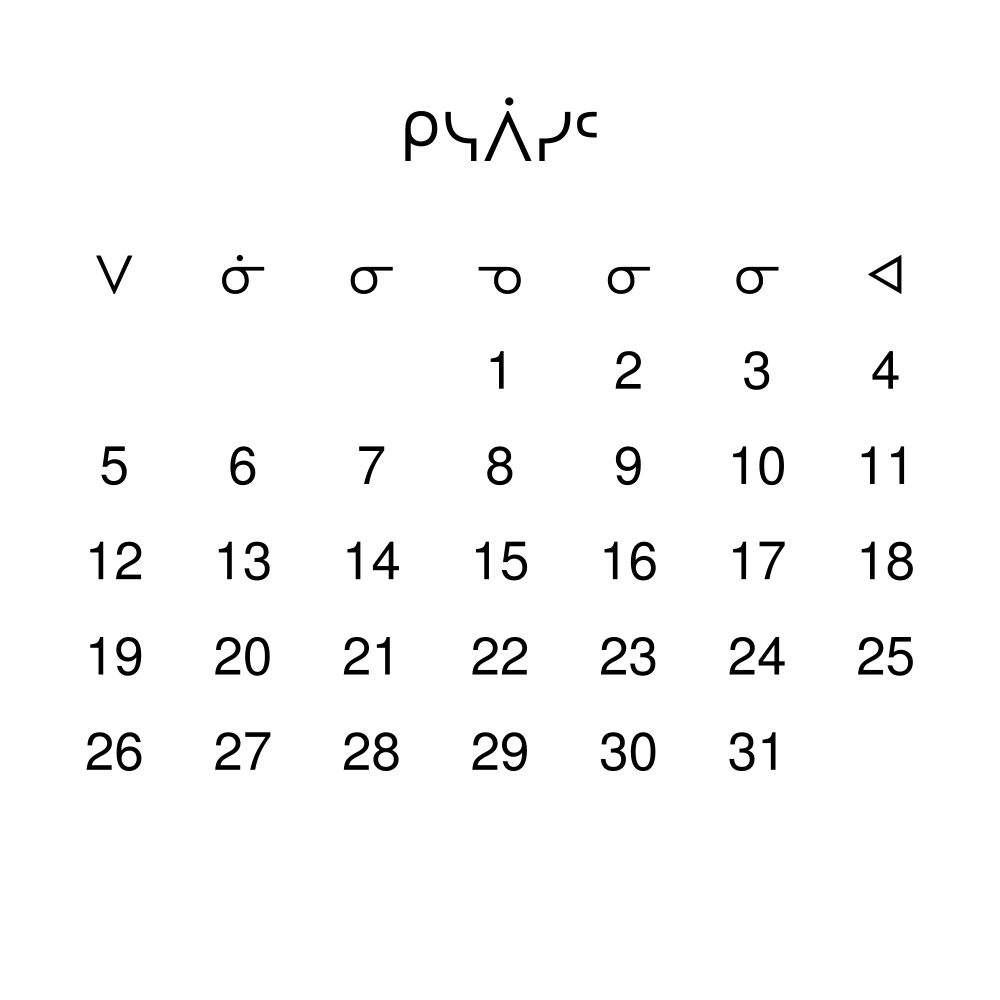 - Linguistics enthusiasts and polyglots - For "language geeks" interested in comparative linguistics or the mechanics of different languages and who value the aesthetic differences in scripts, orthography, and typography of different languages, the Cree calendar serves as an object of intellectual interest. You can collect calendars for various languages to compare their linguistic roots (e.g., comparing Romance languages vs. Slavic languages). Leskoff's calendars are characterized by specific typographic choices that highlight the orthography and script unique to the target language. Think correct usage of diacritics, characters, and directional writing (left-to-right vs. right-to-left). The minimalist design focuses on legibility and aesthetic appeal of the script itself.