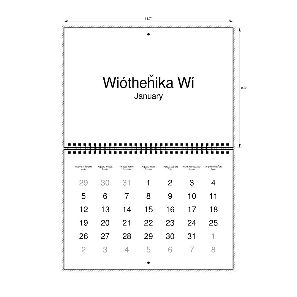2026 Wall CalendarLakota/English-Labeled, Monday-Start Layout, Wire-Bound, 11.7 x 8.3 in (29.7 x 21.0 cm)