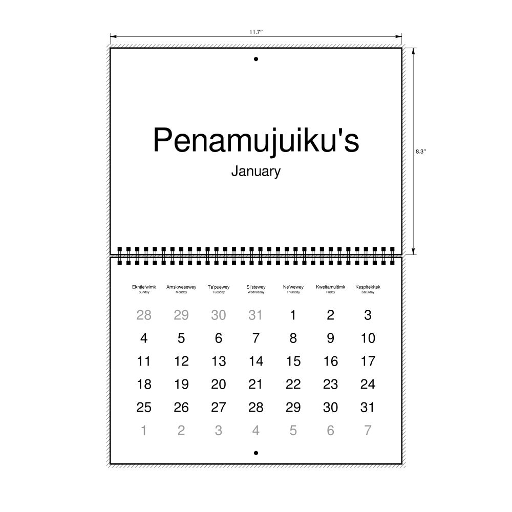 2026 Wall CalendarMi'kmaq/English-Labeled, Sunday-Start Layout, Wire-Bound, 11.7 x 8.3 in (29.7 x 21.0 cm)