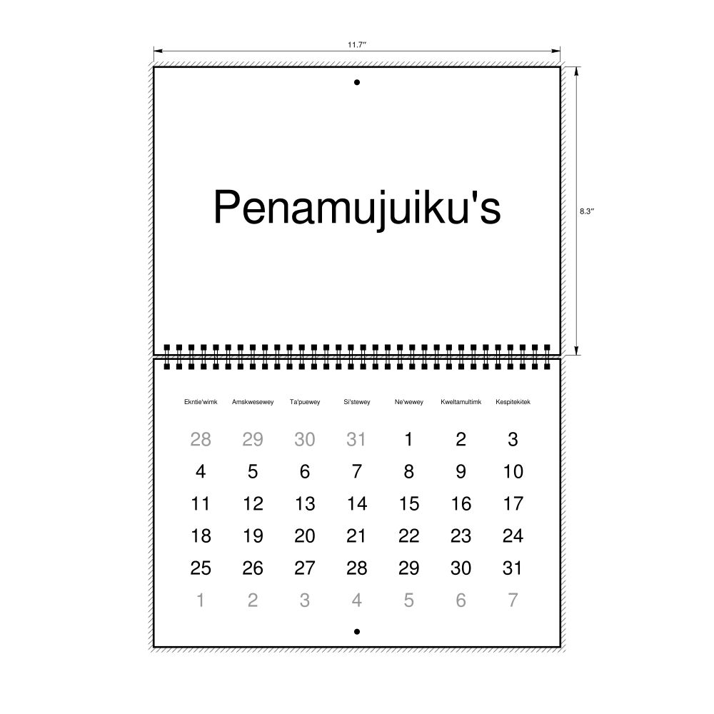 - Gift buyers - Choose this calendar if you are looking for specific, personalized gift ideas for friends and colleagues who have an affinity for the Mi'kmaq language or its culture. A niche, thoughtful alternative to generic stationery, this Mi'kmaq calendar demonstrates that you understand the recipient's specific interest in the language and culture.