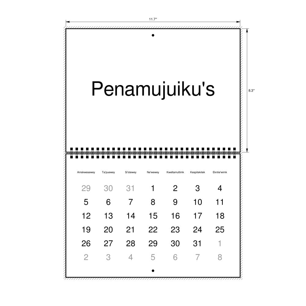 - Gift buyers - Choose this calendar if you are looking for specific, personalized gift ideas for friends and colleagues who have an affinity for the Mi'kmaq language or its culture. A niche, thoughtful alternative to generic stationery, this Mi'kmaq calendar demonstrates that you understand the recipient's specific interest in the language and culture.