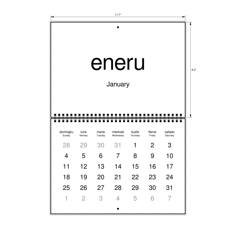 2027 Wall Calendar, Mapuche/English-Labeled, Sunday-Start Layout, Wire-Bound, 11.7 x 8.3 in (29.7 x 21.0 cm)