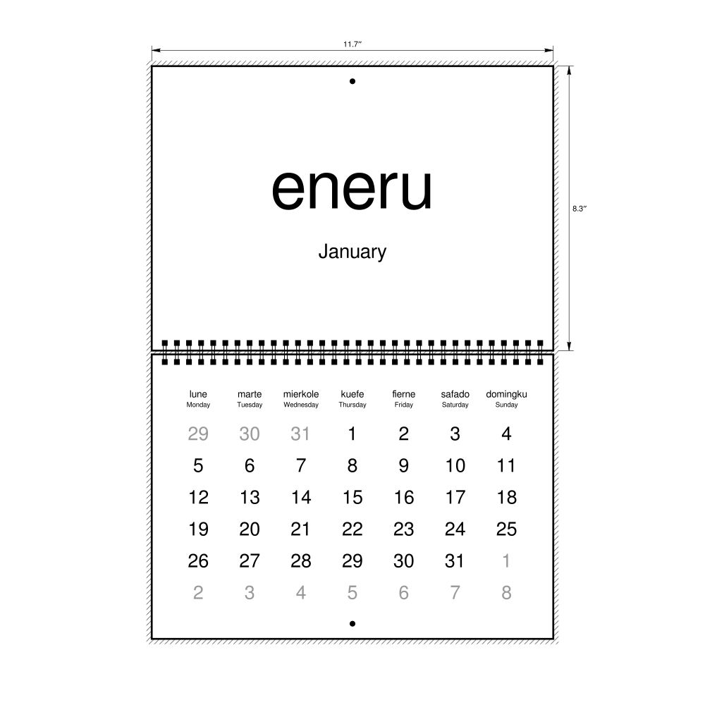 2026 Wall CalendarMapuche/English-Labeled, Monday-Start Layout, Wire-Bound, 11.7 x 8.3 in (29.7 x 21.0 cm)