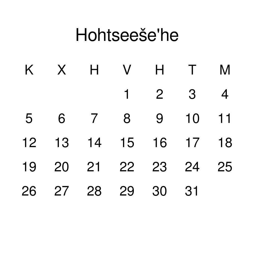 • Cheyenne language learners and students - For individuals currently studying Cheyenne, this calendar acts as a tool for passive learning and vocabulary reinforcement. It integrates essential Cheyenne vocabulary into a daily visual environment and promotes retention through passive immersion and spaced repetition. Place it above a desk or study area to support immersion techniques.