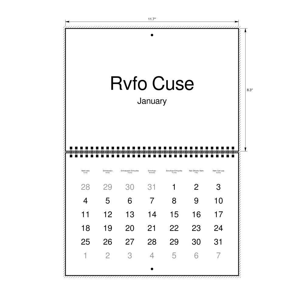2027 Wall Calendar, Muscogee/English-Labeled, Sunday-Start Layout, Wire-Bound, 11.7 x 8.3 in (29.7 x 21.0 cm)