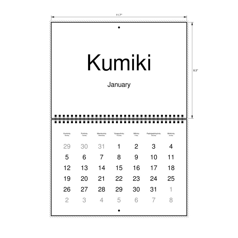 2027 Wall Calendar, Kaurna-Labeled, Monday-Start Layout, Wire-Bound, 11.7 x 8.3 in (29.7 x 21.0 cm)