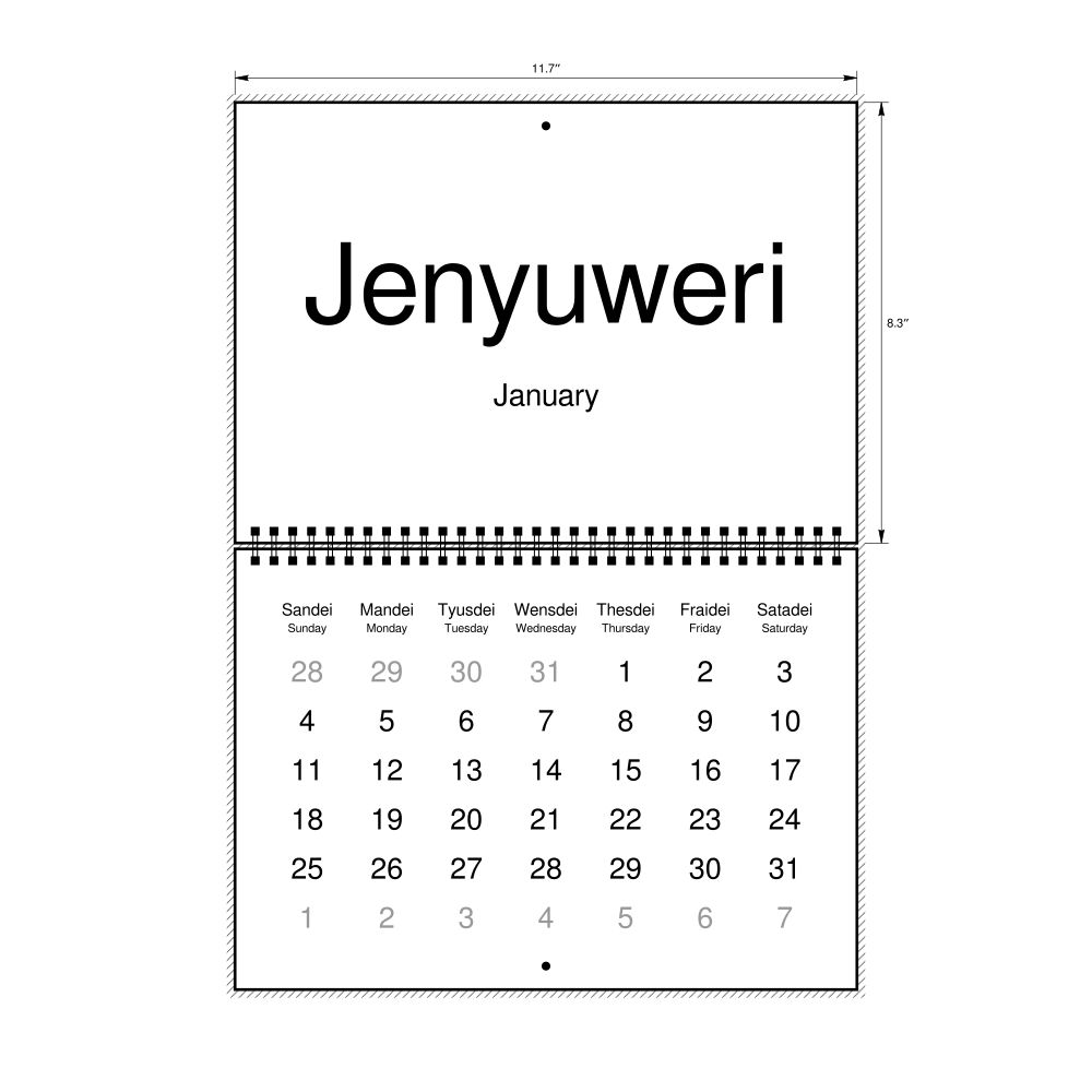 2026 Wall Calendar, Australian Kriol-Labeled, Sunday-Start Layout, Wire-Bound, 11.7 x 8.3 in (29.7 x 21.0 cm)