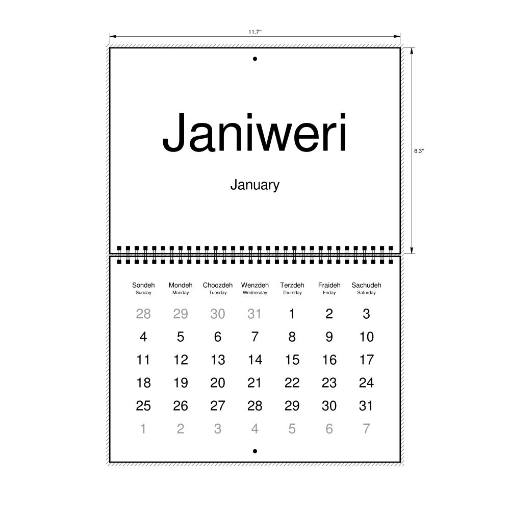 2026 Wall Calendar, Belizean Creole/English-Labeled, Monday-Start Layout, Wire-Bound, 11.7 x 8.3 in (29.7 x 21.0 cm)