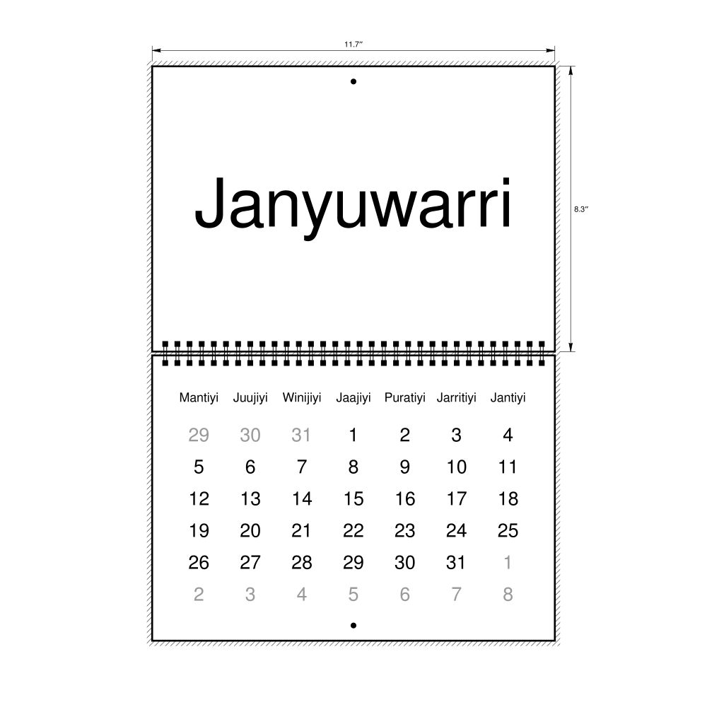 - Gift buyers - Choose this calendar if you are looking for specific, personalized gift ideas for friends and colleagues who have an affinity for the Warlpiri language or its culture. A niche, thoughtful alternative to generic stationery, this Warlpiri calendar demonstrates that you understand the recipient's specific interest in the language and culture.