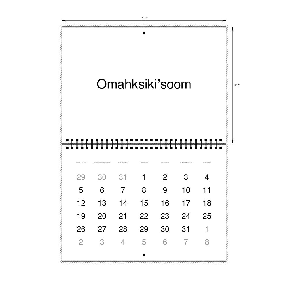 - Blackfoot heritage speakers and cultural connectors - For individuals seeking to maintain a connection to their history, ancestral roots, or the culture associated with the Blackfoot language, the calendar serves as a daily cultural marker. Use it in your home, office, library, or museum as a link to linguistic and cultural identity that integrates Blackfoot into your everyday life. Familiar language script and naming conventions may also provide a sense of home in a foreign environment.