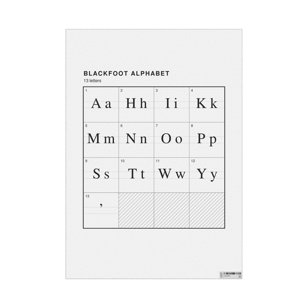 - Linguists and philologists - For both professionals and hobbyists, this alphabet print serves as a piece of linguistic art that presents the character inventory of Blackfoot as a linguistic (graphemic) dataset. Add this to your Blackfoot collection to complement your studies and research. A mixture of Blackfoot letters and English metatext makes it a unique, visually intriguing illustration of linguistic diversity and interaction.