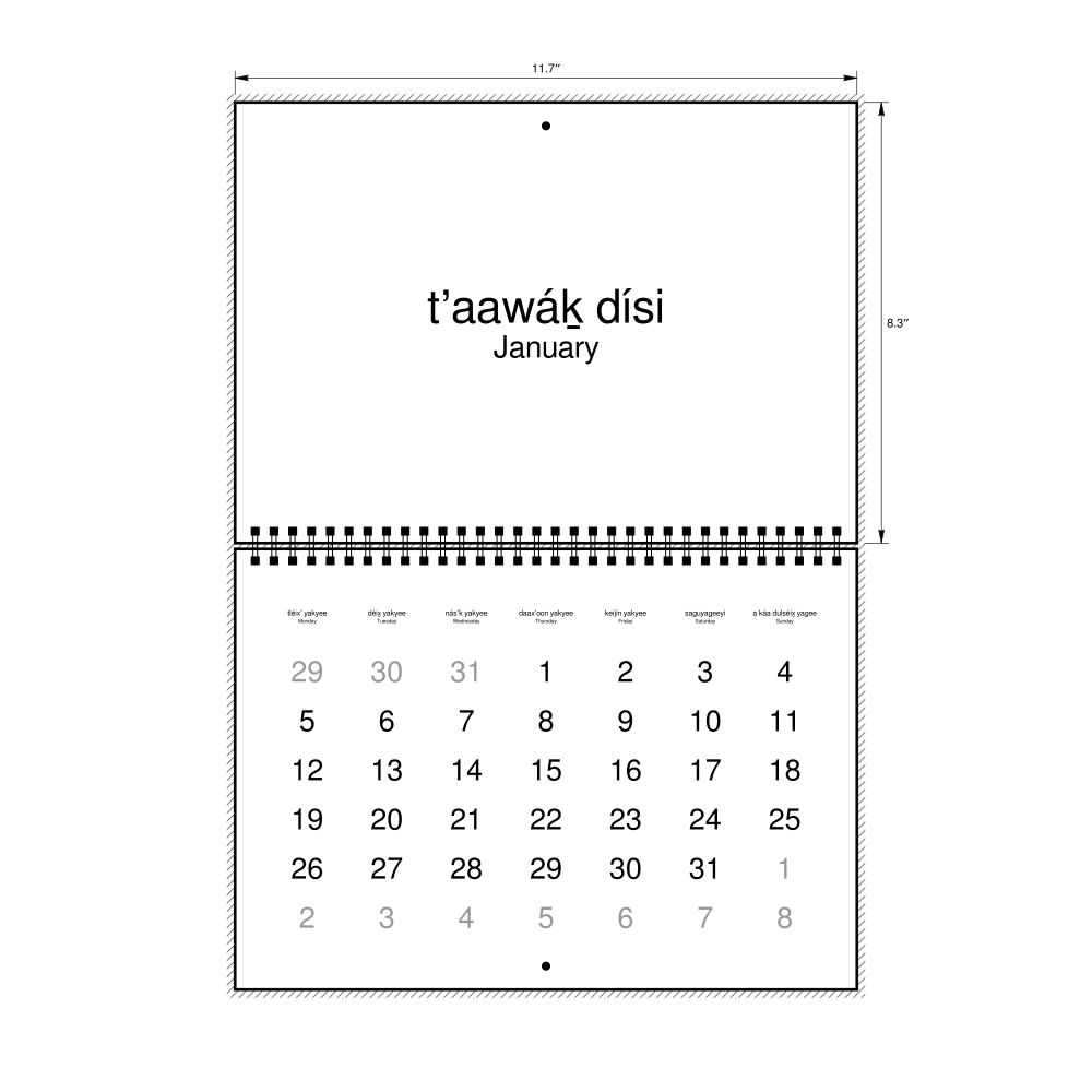 2026 Wall CalendarTlingit/English-Labeled, Monday-Start Layout, Wire-Bound, 11.7 x 8.3 in (29.7 x 21.0 cm)