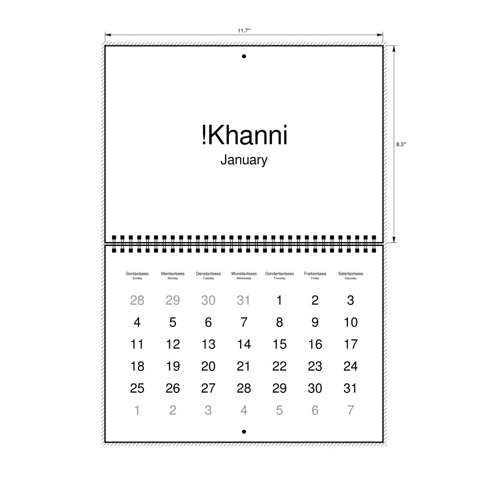 2027 Wall Calendar, Khoekhoe/English-Labeled, Monday-Start Layout, Wire-Bound, 11.7 x 8.3 in (29.7 x 21.0 cm)