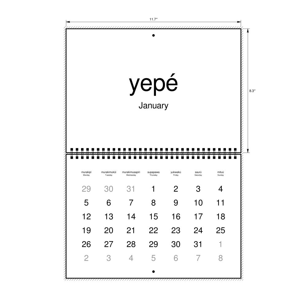 2026 Wall Calendar, Nheengatu-Labeled, Monday-Start Layout, Wire-Bound, 11.7 x 8.3 in (29.7 x 21.0 cm)