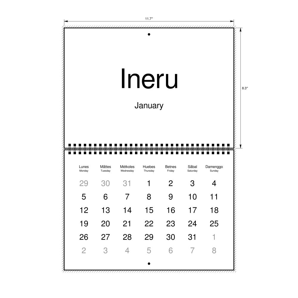 2026 Wall CalendarChamorro/English-Labeled, Monday-Start Layout, Wire-Bound, 11.7 x 8.3 in (29.7 x 21.0 cm)