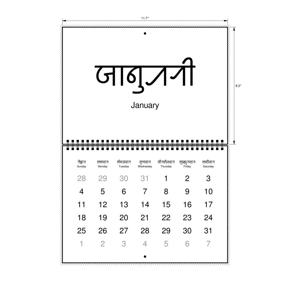 2026 Wall Calendar, Sylheti-Labeled, Sunday-Start Layout, Wire-Bound, 11.7 x 8.3 in (29.7 x 21.0 cm)