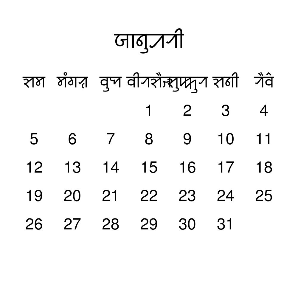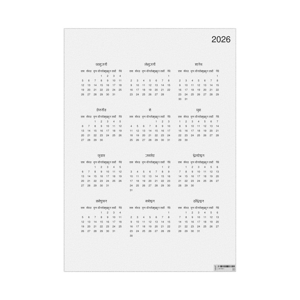 • Linguistics enthusiasts and polyglots - For "language geeks" interested in comparative linguistics or the mechanics of different languages and who value the aesthetic differences in scripts, orthography, and typography of different languages, the Sylheti calendar serves as an object of intellectual interest. You can collect calendars for various languages to compare their linguistic roots (e.g., comparing Romance languages vs. Slavic languages). Leskoff's calendars are characterized by specific typographic choices that highlight the orthography and script unique to the target language. Think correct usage of diacritics, characters, and directional writing (left-to-right vs. right-to-left). The minimalist design focuses on legibility and aesthetic appeal of the script itself.
