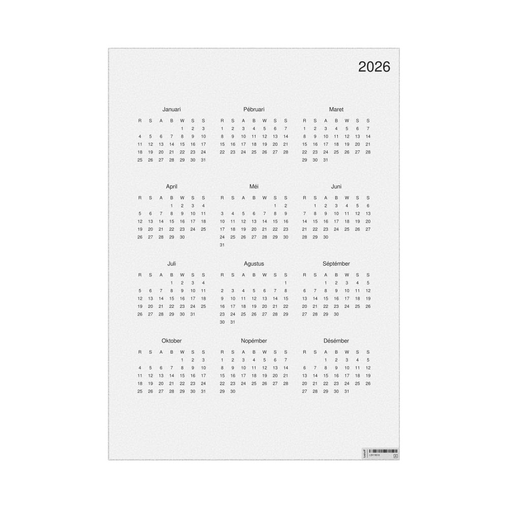 Leskoff 2026 Wall Calendar, Balinese-Labeled, Sunday-Start Layout, Poster / Wall Print, 23.4 x 33.1 in (59.4 x 84.1 cm), image 1 of 2