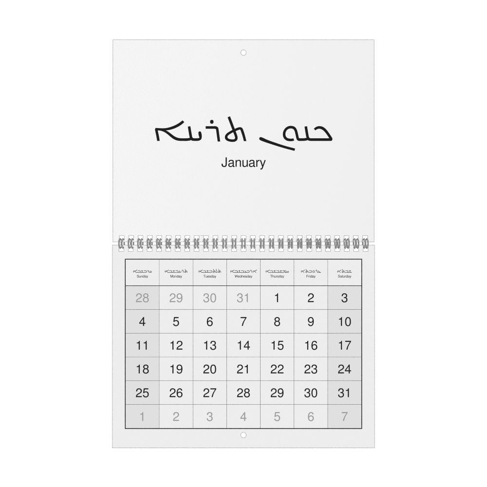 2026 Wall Calendar, Assyrian Neo-Aramaic-Labeled, Sunday-Start Layout, Wire-Bound, 11 x 8.5 in (27.9 x 21.6 cm)