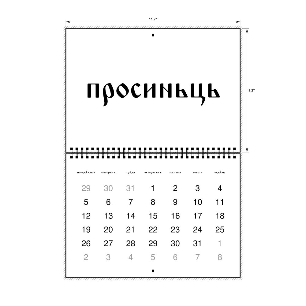 - Polyglots and autodidacts - For "language geeks" interested in the origins of different languages, classical literature, and scholarly pursuits and who value the typographic and aesthetic details of historical languages, the Old Church Slavonic calendar serves as an object of intellectual interest. You can collect calendars for various languages to compare their linguistic roots. The minimalist design focuses on legibility and aesthetic appeal of the historic and reconstructed words themselves.