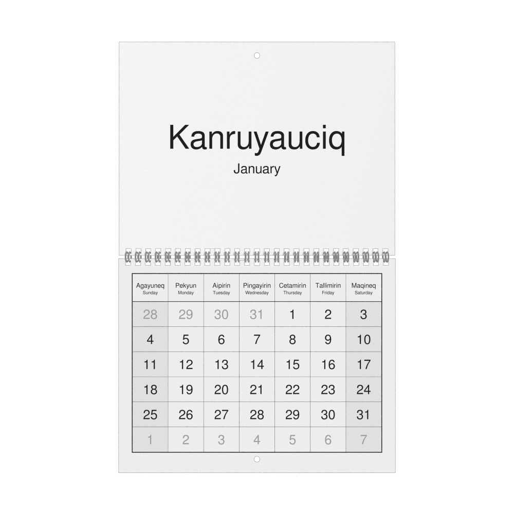 2026 Wall Calendar, Yup'ik/English-Labeled, Monday-Start Layout, Wire-Bound, 11 x 8.5 in (27.9 x 21.6 cm)