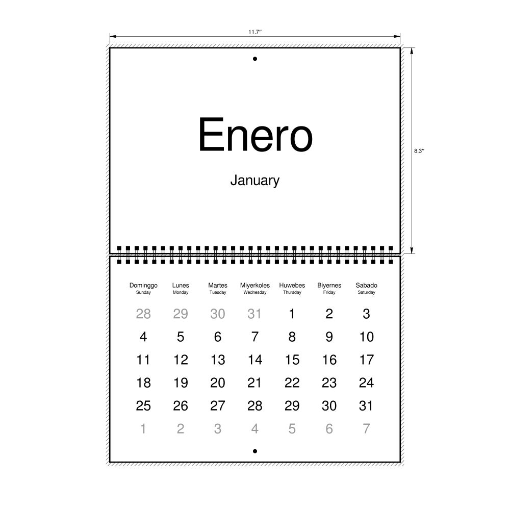 2026 Wall CalendarHiligaynon/English-Labeled, Sunday-Start Layout, Wire-Bound, 11.7 x 8.3 in (29.7 x 21.0 cm)