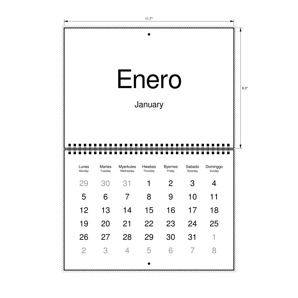 2027 Wall Calendar, Karay-a/English-Labeled, Sunday-Start Layout, Wire-Bound, 11.7 x 8.3 in (29.7 x 21.0 cm)