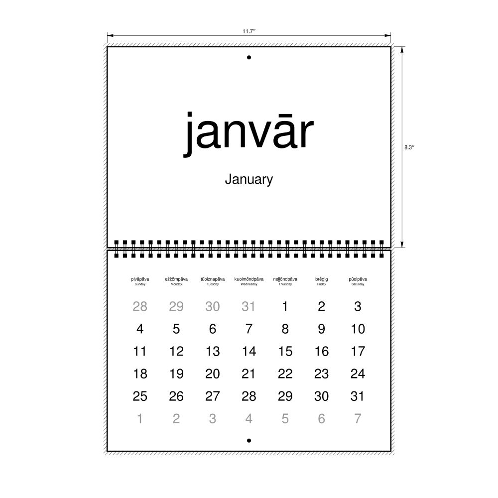 2027 Wall Calendar, Livonian-Labeled, Sunday-Start Layout, Poster / Wall Print, 23.4 x 33.1 in (59.4 x 84.1 cm)