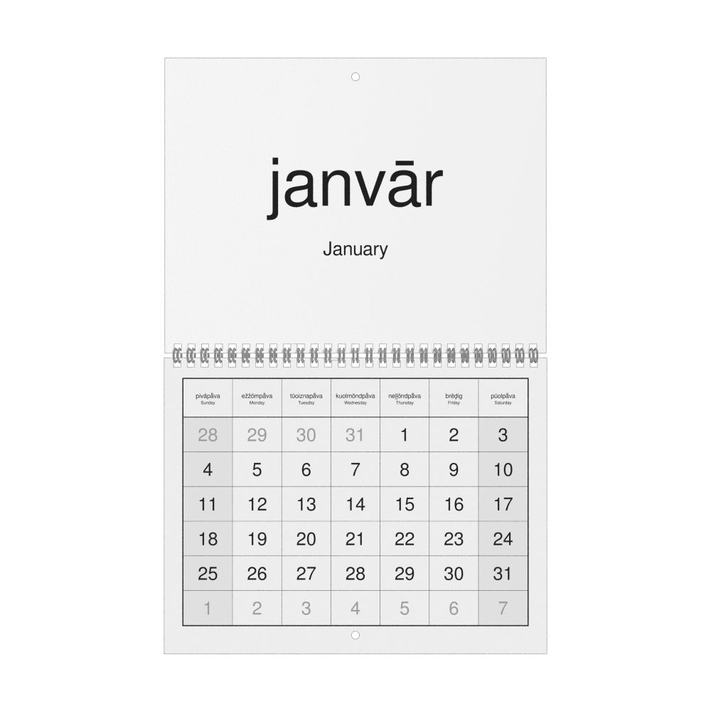 2026 Wall CalendarLivonian/English-Labeled, Sunday-Start Layout, Wire-Bound, 11 x 8.5 in (27.9 x 21.6 cm)