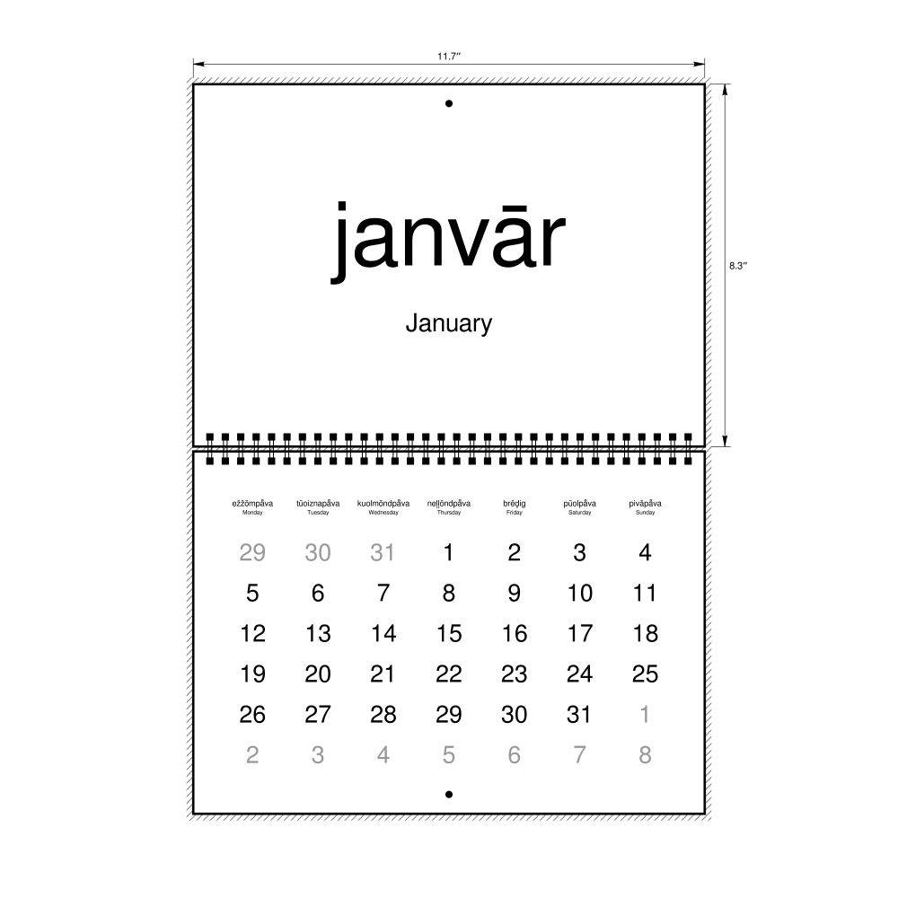 2027 Wall Calendar, Livonian-Labeled, Sunday-Start Layout, Wire-Bound, 11.7 x 8.3 in (29.7 x 21.0 cm)