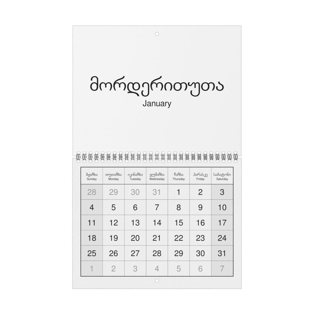 2026 Wall CalendarLaz/English-Labeled, Sunday-Start Layout, Wire-Bound, 11 x 8.5 in (27.9 x 21.6 cm)