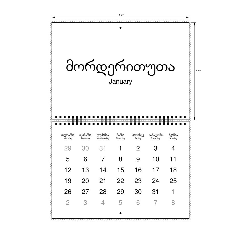 2026 Wall CalendarLaz/English-Labeled, Monday-Start Layout, Wire-Bound, 11.7 x 8.3 in (29.7 x 21.0 cm)