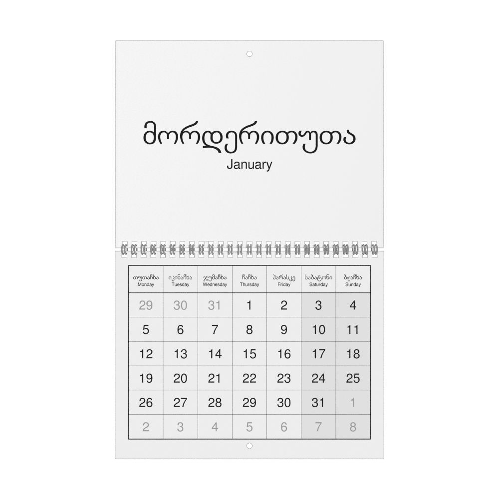 2026 Wall CalendarLaz/English-Labeled, Monday-Start Layout, Wire-Bound, 11 x 8.5 in (27.9 x 21.6 cm)