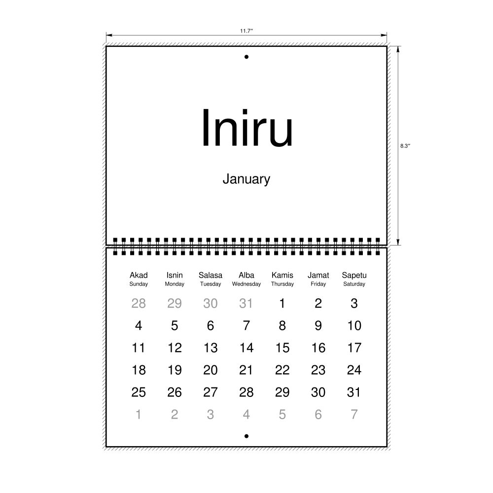 2026 Wall Calendar, Maguindanao/English-Labeled, Monday-Start Layout, Wire-Bound, 11.7 x 8.3 in (29.7 x 21.0 cm)