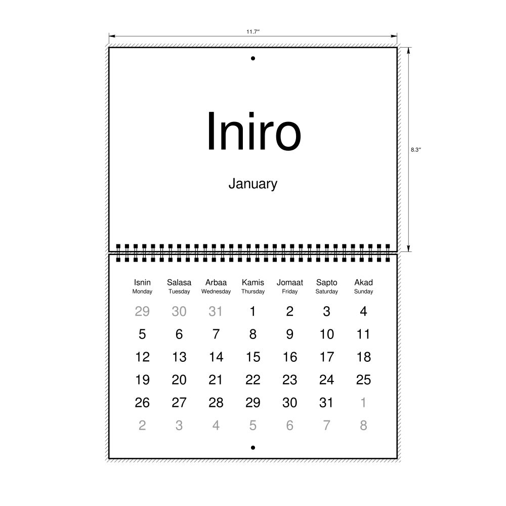 2026 Wall CalendarMaranao/English-Labeled, Monday-Start Layout, Wire-Bound, 11.7 x 8.3 in (29.7 x 21.0 cm)