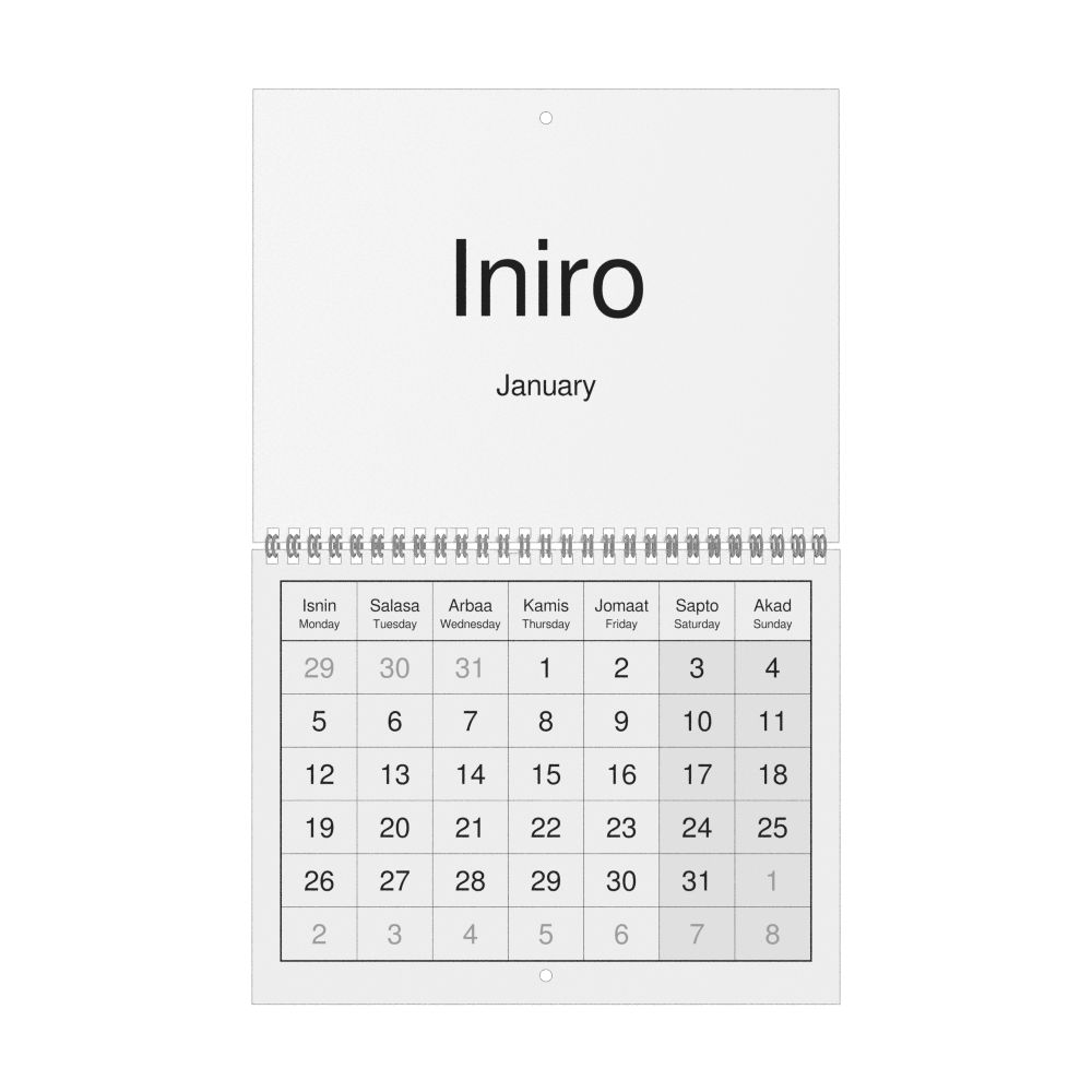 2026 Wall CalendarMaranao/English-Labeled, Monday-Start Layout, Wire-Bound, 11 x 8.5 in (27.9 x 21.6 cm)