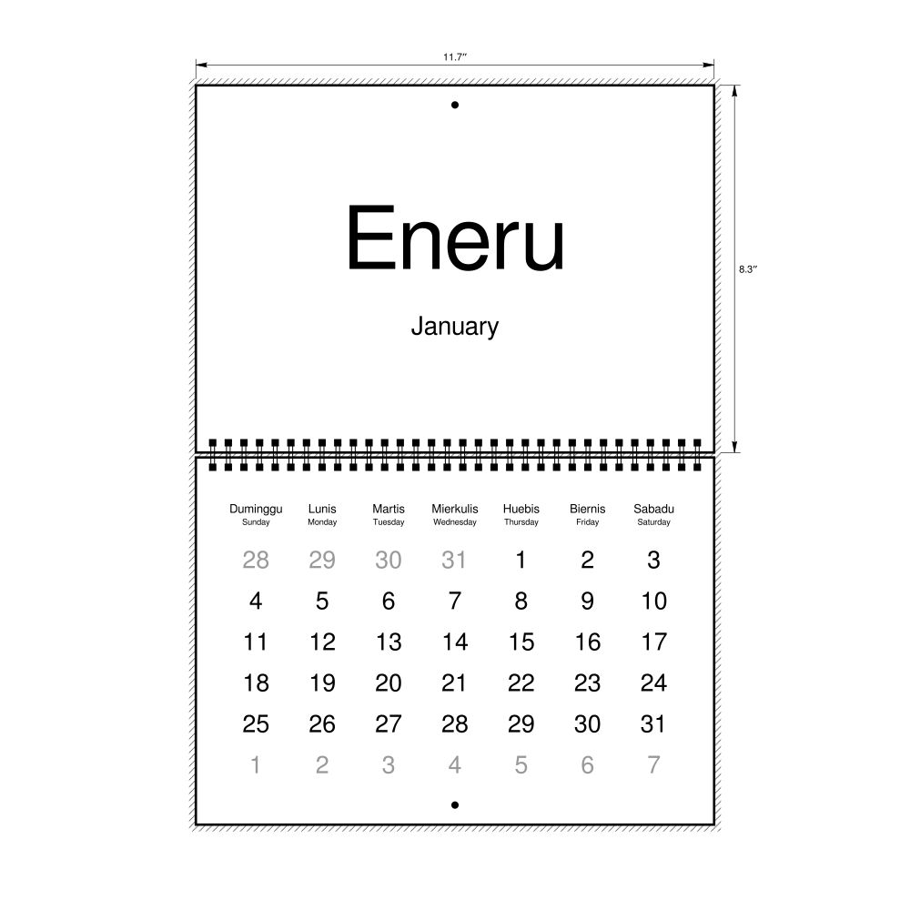 2026 Wall Calendar, Kapampangan/English-Labeled, Monday-Start Layout, Wire-Bound, 11.7 x 8.3 in (29.7 x 21.0 cm)