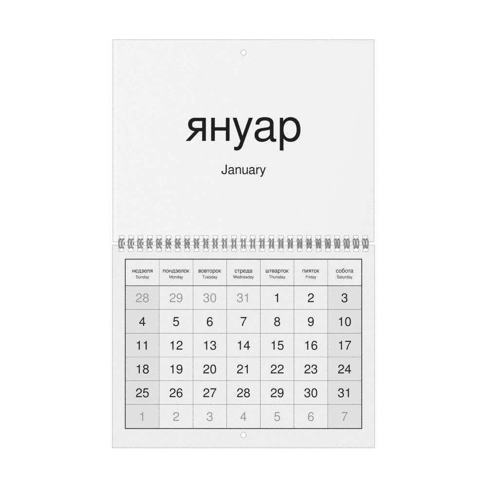 2026 Wall Calendar, Pannonian Rusyn-Labeled, Sunday-Start Layout, Wire-Bound, 11 x 8.5 in (27.9 x 21.6 cm)