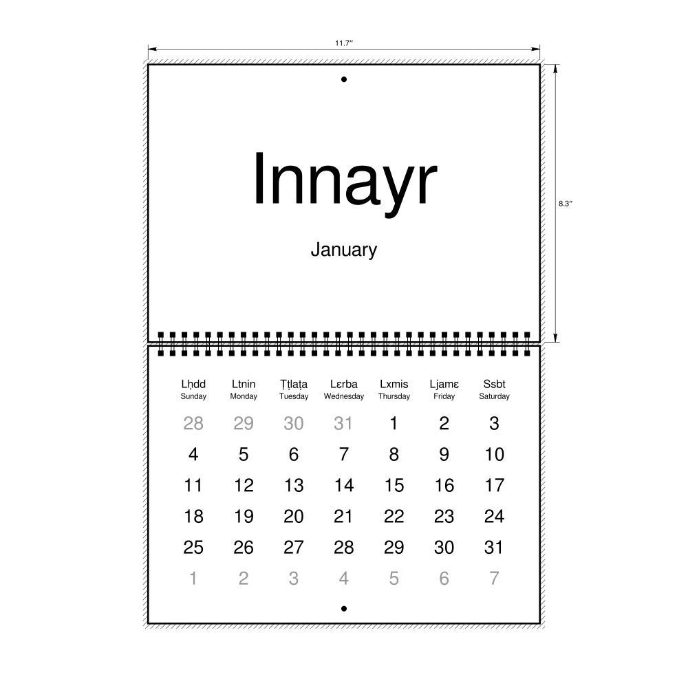 2026 Wall Calendar, Tashelhit-Labeled, Sunday-Start Layout, Wire-Bound, 11.7 x 8.3 in (29.7 x 21.0 cm)